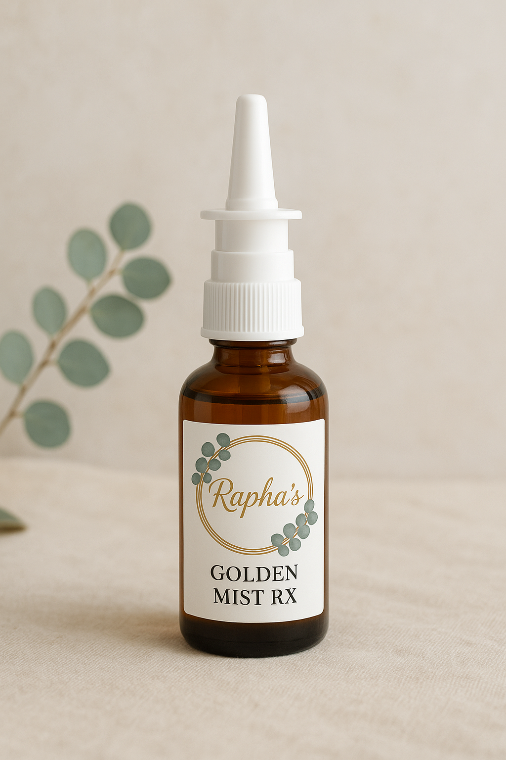 GoldenMist Rx is an innovative aqueous solution meticulously formulated to offer advanced support for respiratory health and topical applications. This cutting-edge mist combines the powerful properties of Golden Seal, a renowned botanical, with deionized water, the potent antiviral agent Stomectol, and the invigorating essence of Eucalyptus essential oil. Designed for optimal absorption and efficacy, GoldenMist Rx provides targeted relief and support, leveraging a blend of traditional herbal wisdom and modern scientific compounds to help you maintain clarity, comfort, and protection.