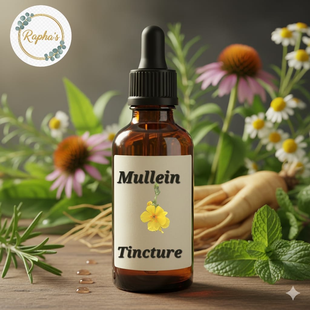 Raphas Healing Herbs Mullein Flower Tincture is a carefully prepared botanical extract made from high-quality, locally grown mullein plants. Traditionally valued across many cultures, mullein has long been associated with respiratory health when used as part of a healthy lifestyle.